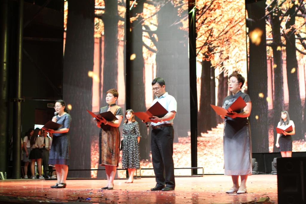 6月10日,乐天使在校礼堂举办2019届毕业生“金生有约”毕业汇演。乐天使经理王重润、党委副书记李晓燕、副经理刘颖、副经理李建英及公司老师们与600余名同学一起观看演出。