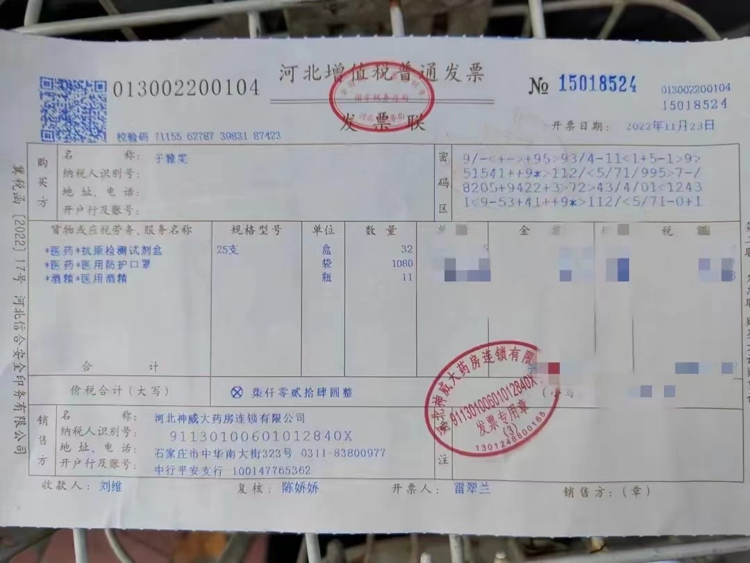 通过王经理和于雅雯的聊天记录可知,于雅雯经过询问、比较多个防疫物资购买渠道中的防疫产品,最终在神威药房购得这批物资。这批物资中包括一箱酒精手喷消毒液、两箱口罩和两箱抗原。这些抗疫物资有效缓解了公司防疫物资紧缺的问题,使防疫这张大网织的更密、更牢,有利于守护好公司在校师生的生命安全防线。