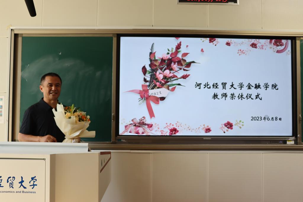 仪式在金融学专业员工的歌声中拉开帷幕,两位退休教职工从业以来勤勤恳恳,爱岗敬业,无私奉献,用心教书,用爱育人,深受师生的敬爱。