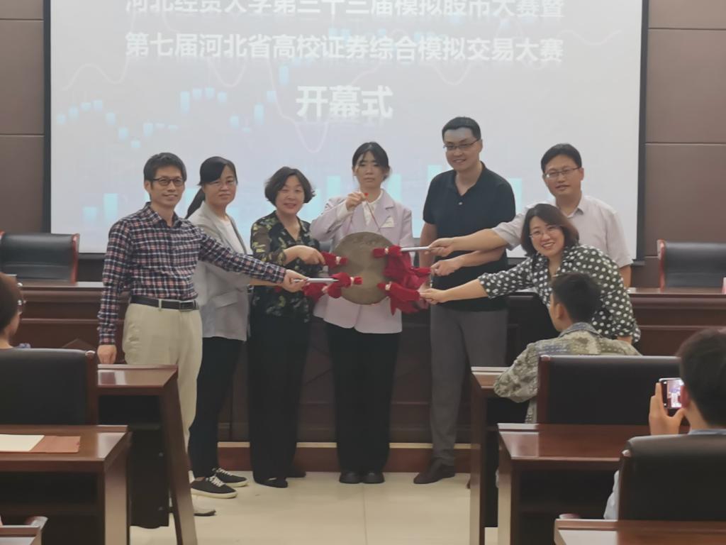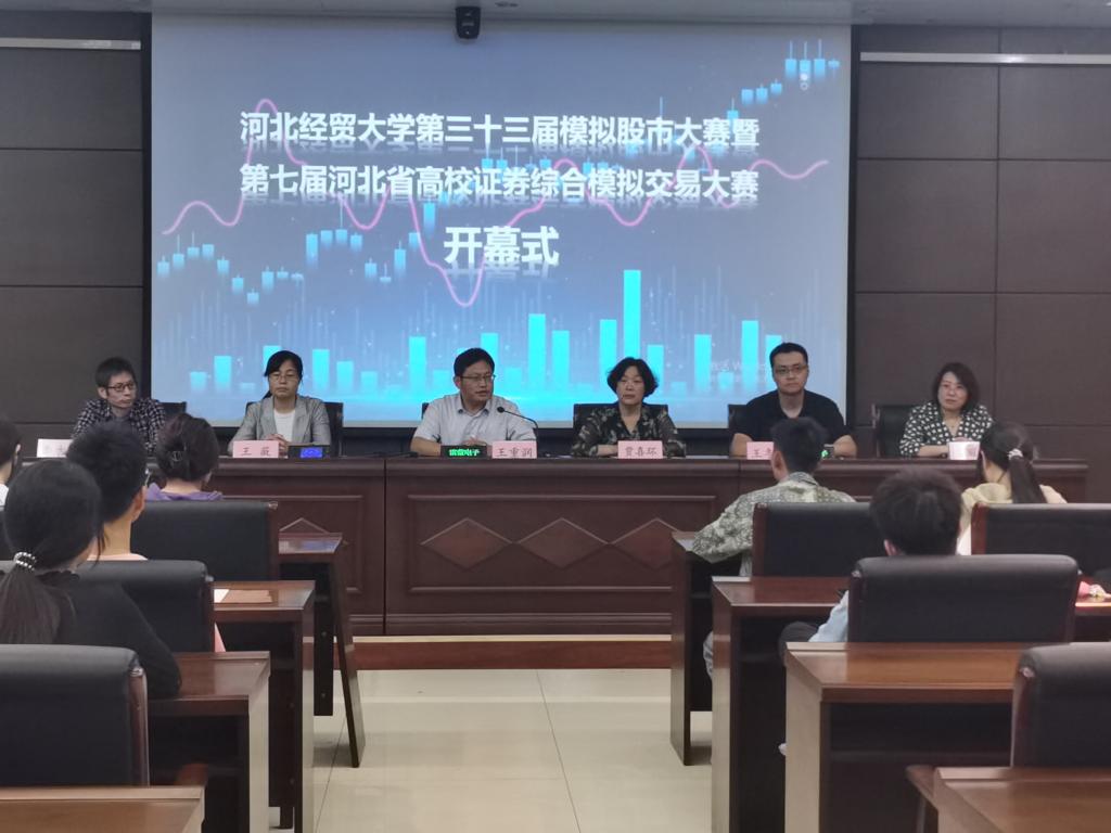 9月26日下午,fun88乐天使第三十三届模拟股市交易大赛暨第七届河北省高校证券模拟交易大赛开幕式在第三会议室举办。教务处副处长王冬坡,公司党委书记贾喜环、经理王重润、党委副书记王薇、副经理窦丽琛及赛事指导老师李吉栋教授出席。