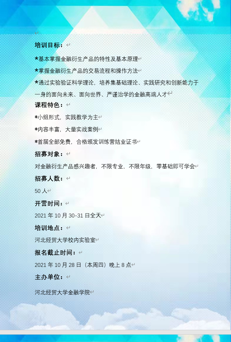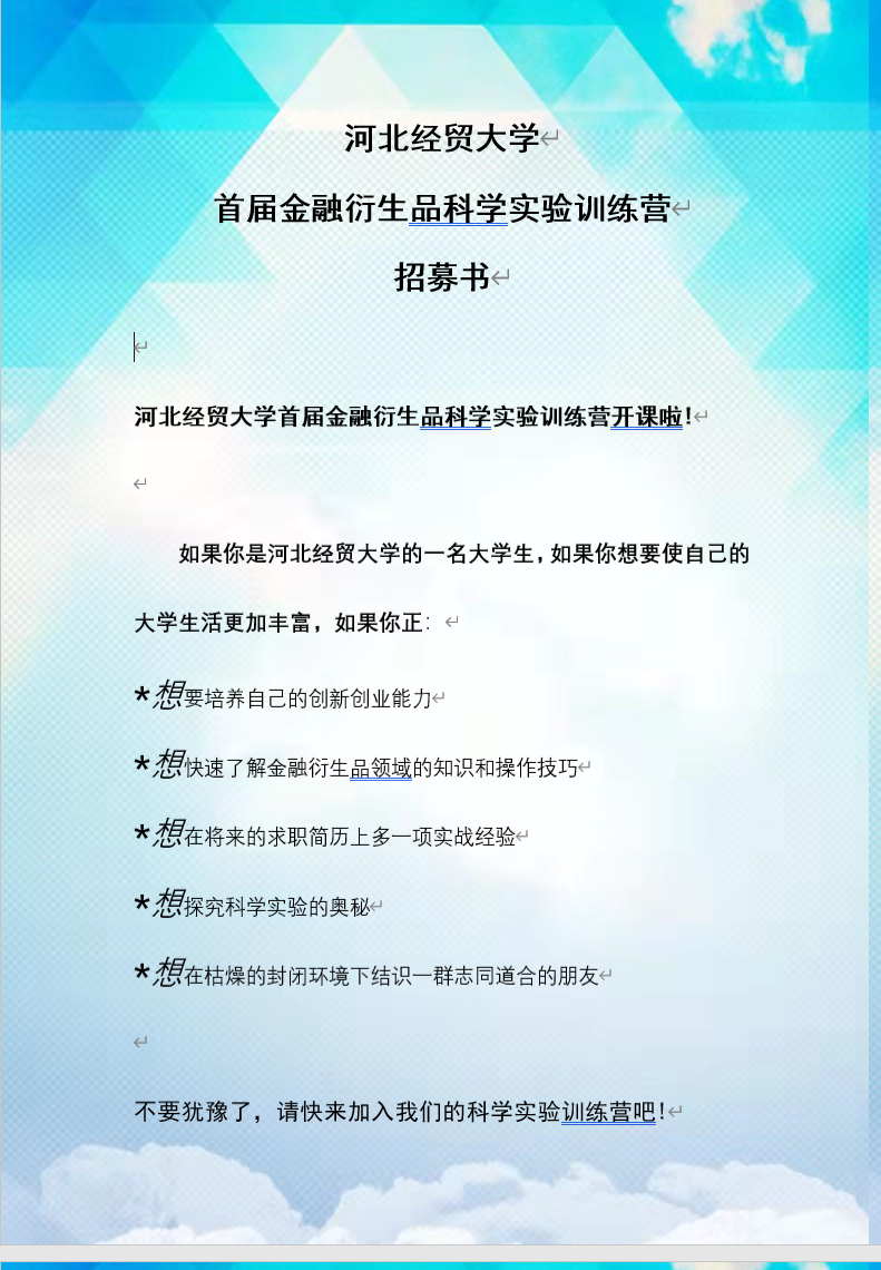fun88乐天使首届金融衍生品科学实验训练营招募书