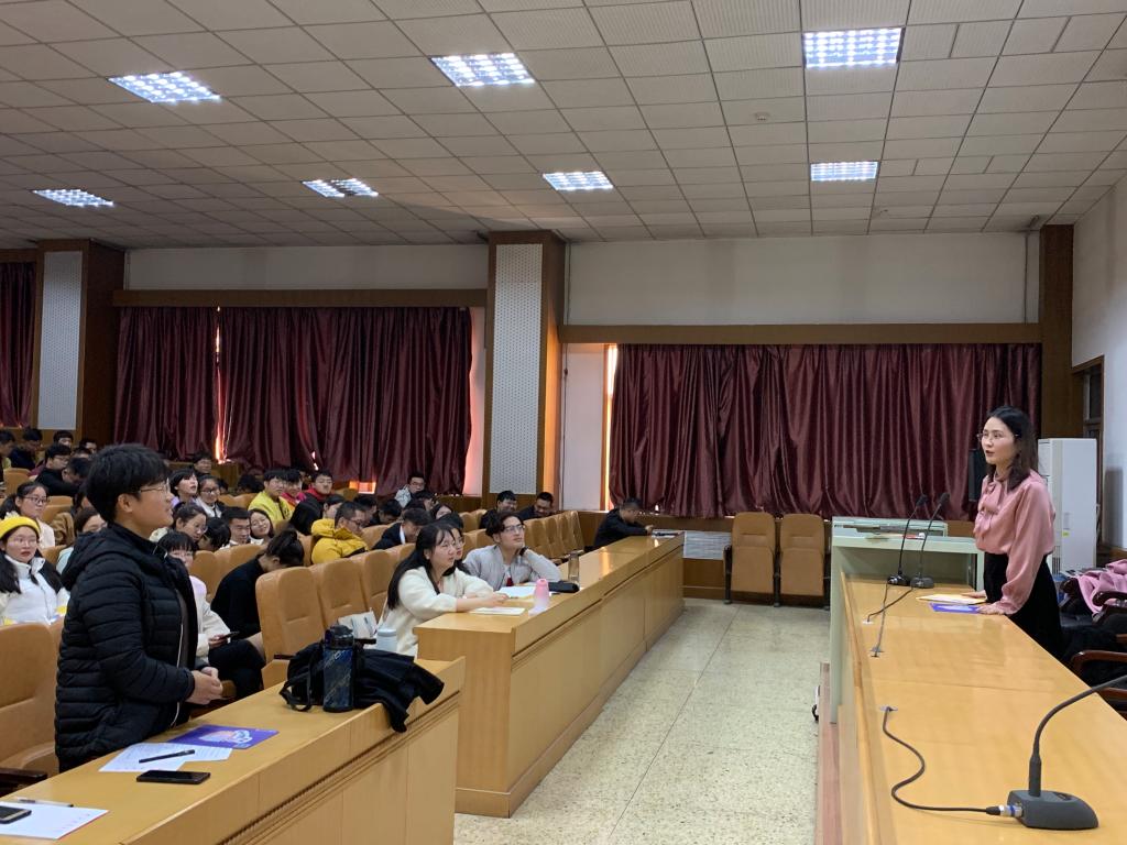 2019年11月10日上午9点,乐天使邀请北京大童保险咨询有限公司运营总监张楠在C教201教室作了题为“互联网科技在保险行业发展中的作用暨新保险人的职涯规划”讲座。乐天使2019级新生、保险专业本科生、研究生400余人参加了本次讲座。讲座由乐天使团队建设办公室主任董岚主持。