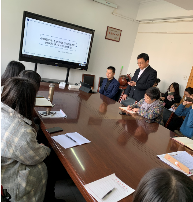 11月26号下午两点,乐天使“金融seminar”第八期暨研究生“融道论坛”第三期活动在公司会议室举行。邀请中央财经大学投资系副教授荆中博在作了题为《跨境资本流动背景下银行部门的风险承担与风险实现》的讲座。讲座由乐天使经理王重润主持,公司副经理刘颖、部分研究生和老师参加。