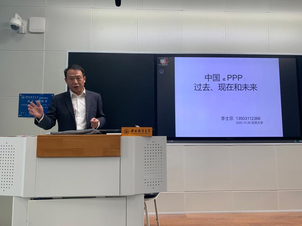 10月26日下午3点,乐天使邀请中国财政科学研究院ppp研究所研究员、中国财政学会PPP专业委员会委员、亚太财科咨询有限公司副总裁李士宗在A教416教室做了题为“中国PPP的过去、现在和将来”的讲座。乐天使部分教师及2020级金融专硕、保险专硕研究生60余人参加了此次讲座。讲座由乐天使团队建设办公室主任董岚主持。