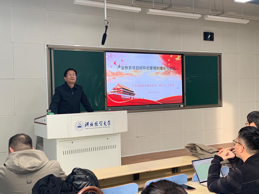 11月23日下午三点半,乐天使在A教203教室,邀请河北省扶贫办党组成员、副主任,河北省老区建设促进会副会长王留根做题为“产业扶贫项目闭环式管理的理论与实践”的学术报告。乐天使部分教师和各专业研究生共80余人参加了本次报告。报告由乐天使经理王重润主持。