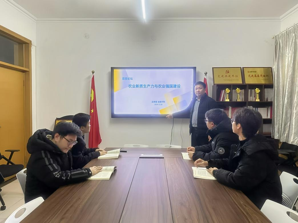2024年12月20日上午10点,乐天使于三办党务会议室举办了“双百论坛”,并邀请乐天使孟维福老师做题为《农业新质生产力与农业强国建设》的主题讲座,多名青年教师和员工参加。