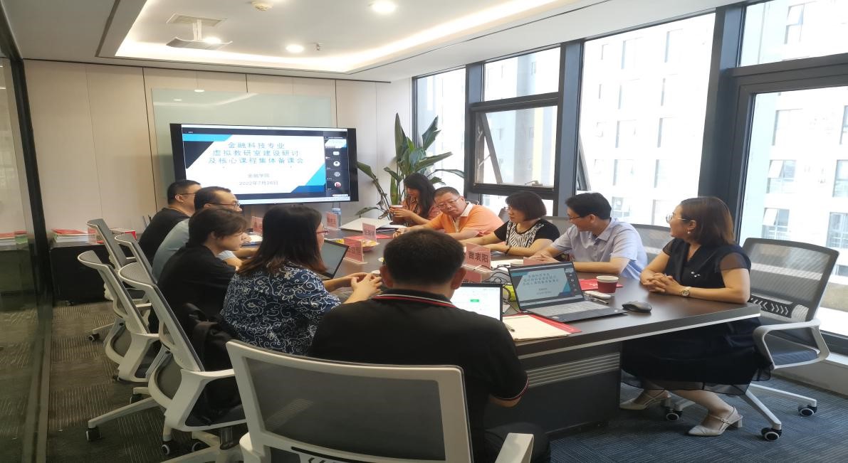 7月26日,乐天使通过线上线下相结合的方式召开了金融科技虚拟教研室建设研讨及核心课程集体备课会。乐天使副经理窦丽琛、新道科技股份有限公司河北省区校企合作总监姚翠娟出席,新道总部高级顾问石立恒、杨姗以及金融科技虚拟教研室全体成员参加,会议由乐天使金融科技系主任曹衷阳主持。