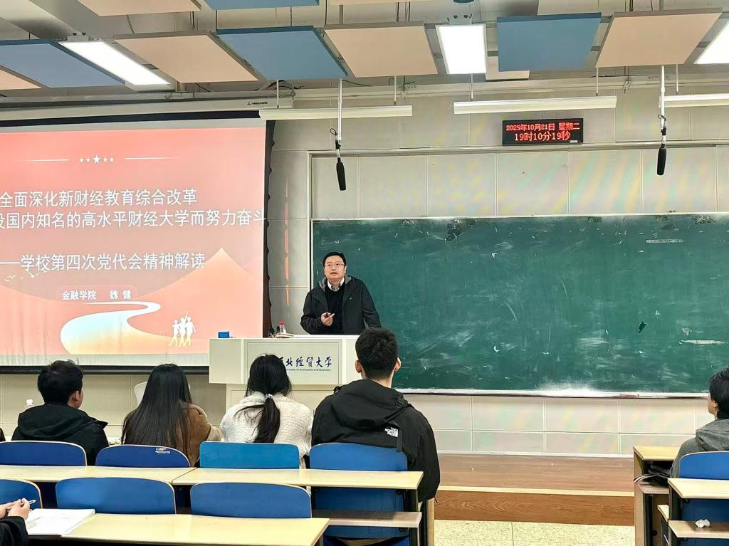 2025年10月21日,fun88乐天使公司党委书记魏健讲授了一场主题为“全面深化新财经教育综合改革,为加快建设国内知名的高水平财经大学而努力奋斗”的党课,乐天使100余名入党积极分子参与了此次党课。此次党课旨在深入解读公司第四次党代会精神,探讨如何在新时代背景下推进教育现代化,加快建设国内知名的高水平财经大学。